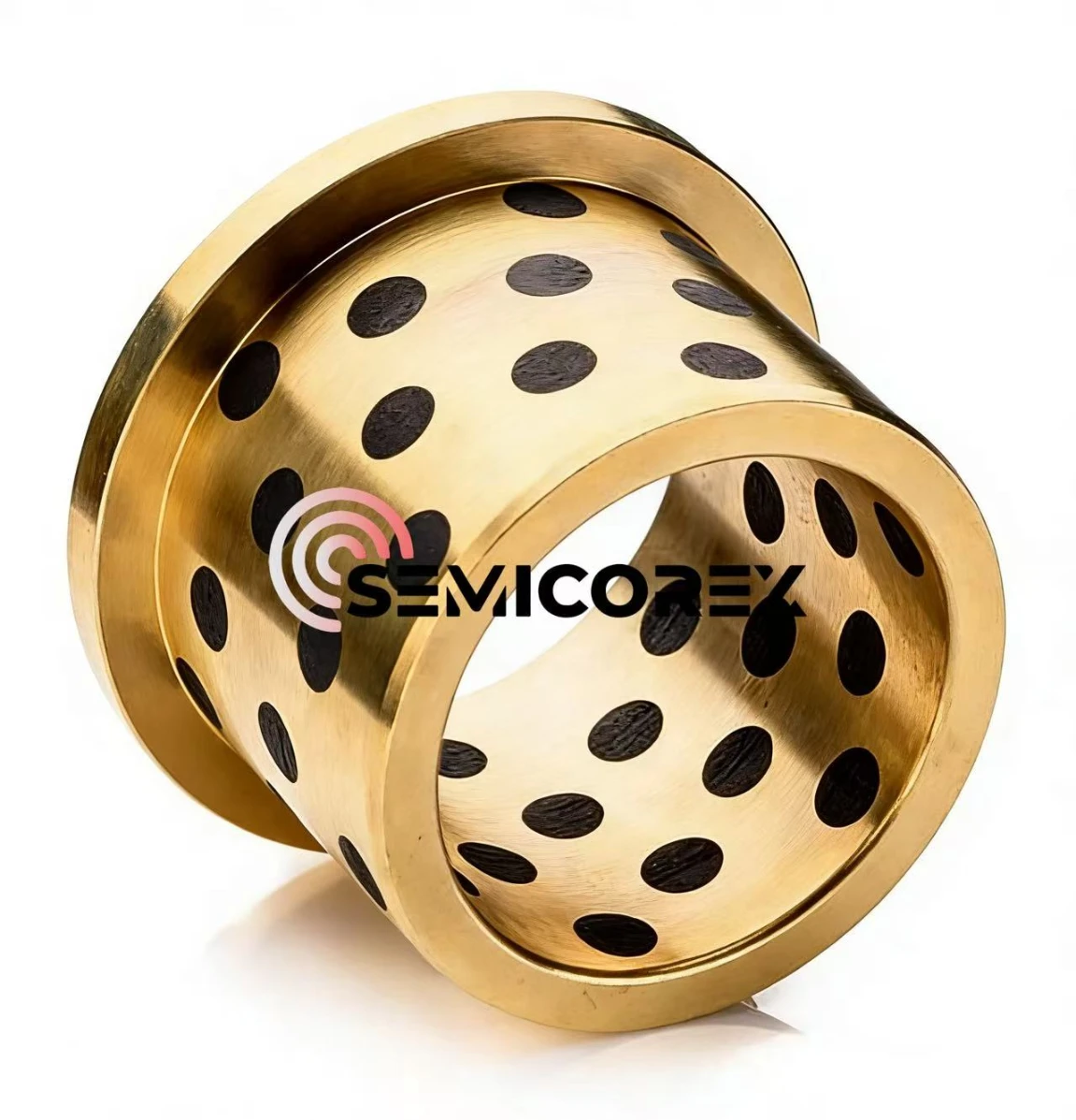 Semicorex grafit selvsmørende bøsninger er sammensat af en kobberlegeringsmatrix og solide grafitpropper. Friktionsoverfladen på selvsmørende grafitbøsninger har flere præcisionsbearbejdede huller, der er ordnet fordelt, hver fyldt med specielt formulerede solide grafitpropper. Under drift frigives grafitpartikler gradvist fra hullerne og overføres til friktionsoverfladen mellem akslen og bøsningen, hvilket skaber en konstant smørende film. Denne grafit smørefilm eliminerer direkte metal-på-metal-kontakt, sænker friktionskoefficienten markant og minimerer komponentslid.