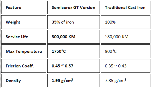 Massereduktion: GT-versionen vejer kun 35% af en standard støbejernsskive.