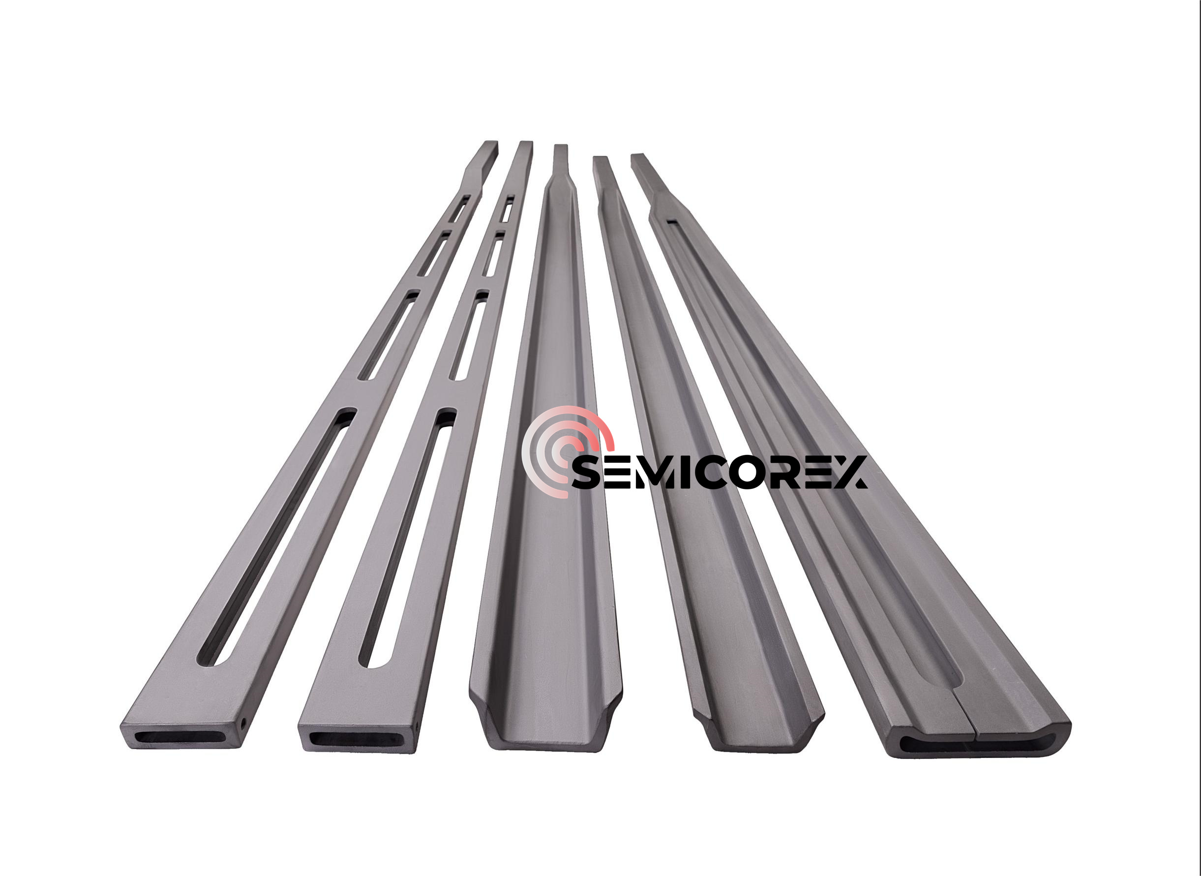 SiC Paddles er designet til at være robuste og pålidelige og er en arm af cantilever-typen, der holder waferbåde eller waferstakke. Padlen understøtter wafers, mens de indsættes eller fjernes fra proceskammeret. Konventionelle materialer fejler ved disse høje temperaturer på grund af deformation, vridning eller kemisk nedbrydning. Den mekaniske stabilitet og strukturelle integritet af siliciumcarbid gør det muligt for pagajen at overleve flere termiske cyklusser uden tab af form eller funktion. Denne evne er vigtig for at opretholde ovnens justering, sikre, at waferne ikke beskadiges under processen, og minimere dyre nedetid.
