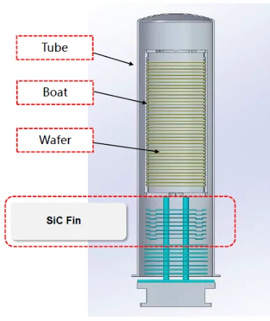 Semicorex solidsiliciumcarbid finnerer typisk installeret som termiske isoleringskomponenter inde i lodrette ovnrør i halvleder termisk behandlingsudstyr, såsom RTP-udglødningsovne og diffusionsovne. Semicorex solide siliciumcarbidfinner kan effektivt regulere temperaturfordelingen i højtemperaturovne og minimere varmeskader på procesdørtætningsdele forårsaget af høje temperaturer. Under våde oxidationsforhold kan Semicorex solide siliciumcarbidfinner bruges til effektivt at forhindre negative påvirkninger på procesresultater og halvlederenheder forårsaget af vanddampkondensering ved relativt lave procestemperaturer.